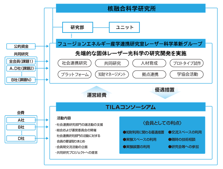TILAコンソーシアム(会員)は、フュージョンエネルギー産学連携研究室レーザー科学革新グループを支援することで、小型集積レーザー技術に関する多様な優遇措置を受けられます。